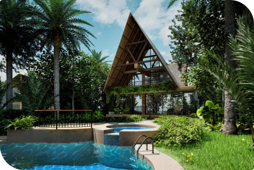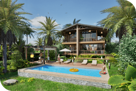 Inspirada en la elegancia de la luna. Casa Lunik es uno de los modelos de residencia con mayor lujo y detalle, deseñada como un refugio exclusivo en plena naturaleza. Construida con maderas y piedra, se integra armoniosamente con el entorno tropical. Su arquitectura de dos niveles maximiza la luz natural y la ventilación cruzada.