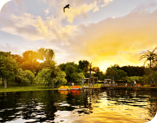 Una laguna natural con más de 10,000 m² diseñada para ofrecerte tranquilidad y armonía con la naturaleza. Explora su muelle privado, disfruta de paseos en pedalones y maravíllate con las tortugas taricayas en su hábitat natural.