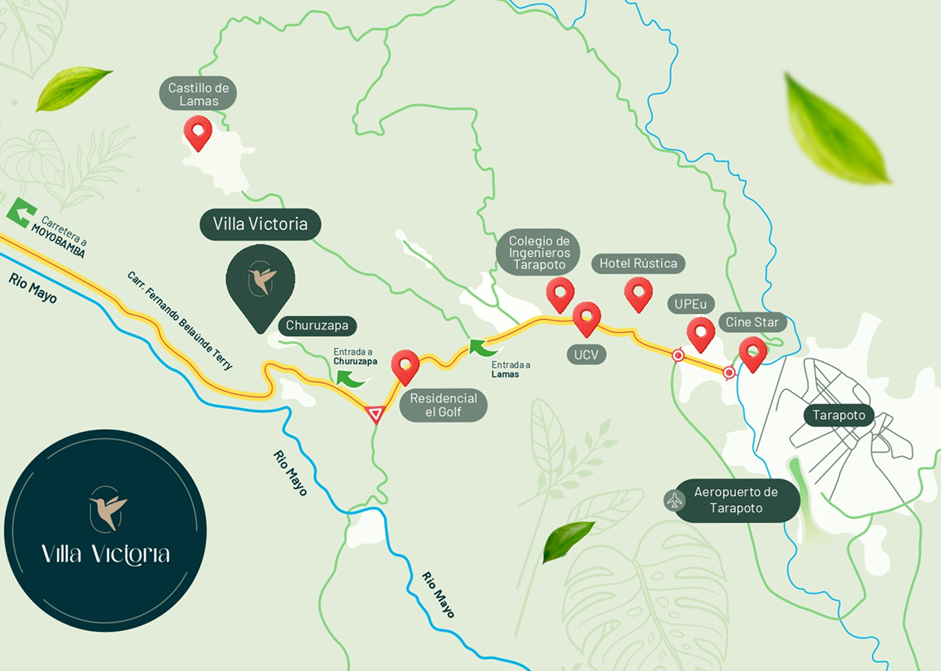 Tarapoto es mucho más que un destino: es la puerta a tu nueva vida. A solo 25 minutos del centro de la ciudad y 20 minutos del aeropuerto, Villa Victoria combina accesibilidad con privacidad.