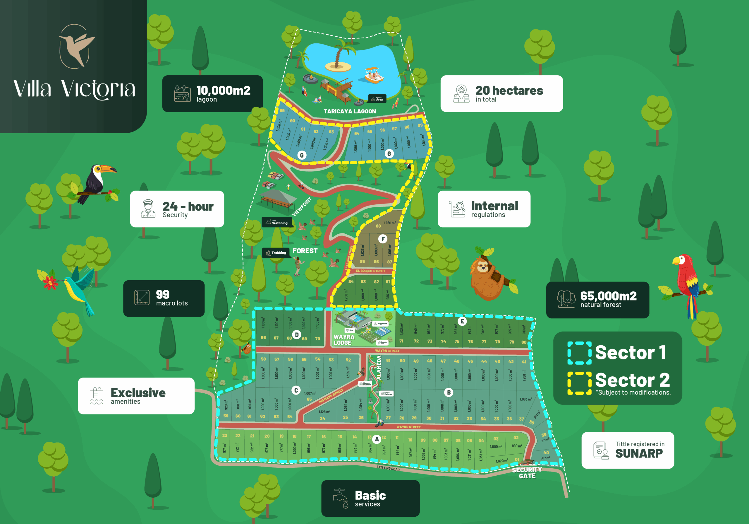 In the heart of Tarapoto, Villa Victoria is a unique condominium for those seeking privacy, breathtaking landscapes, and an elevated lifestyle. With plots starting at 1,000 m², it offers a private lagoon of 10,000 m², a 65,000 m² nature reserve, and access to the exclusive Wayra Lodge, featuring an infinity pool, play areas, sports courts, and a high-end restaurant.